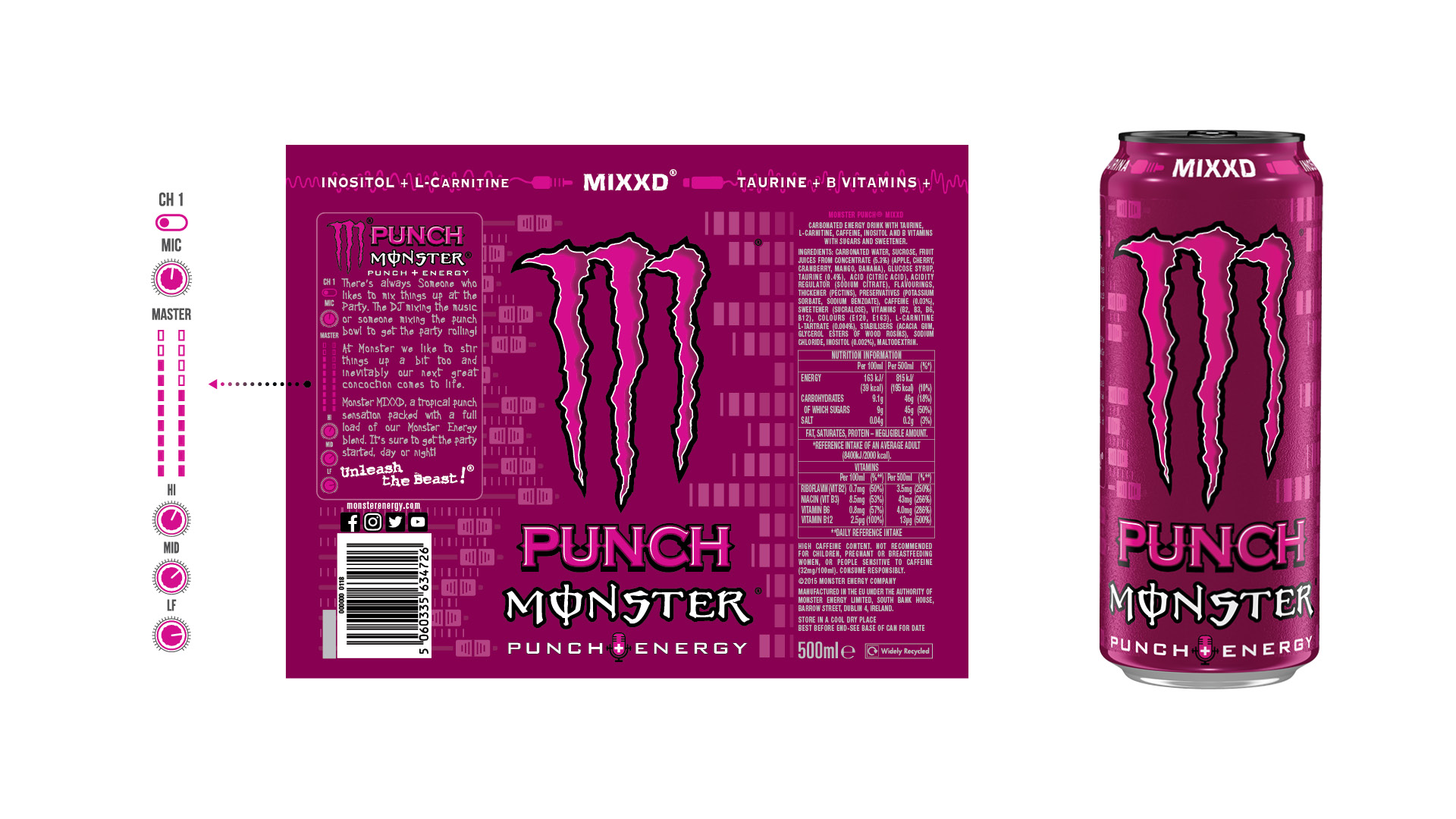 Redesign the MIXXD beverage to better co-exists with the Punch family line of beverages in the Monster portfolio.